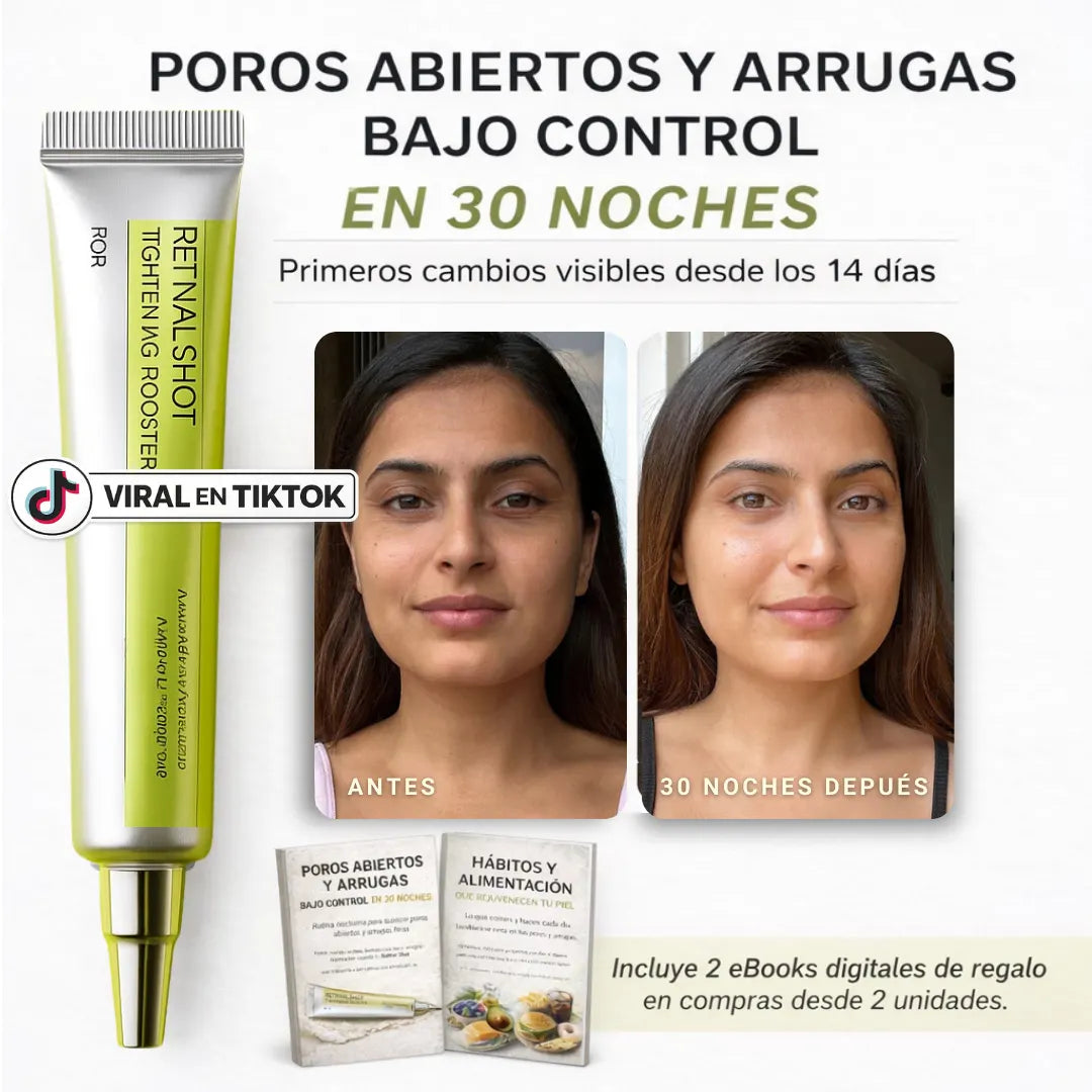 Sentía que mi cara siempre se veía cansada, con arrugas marcadas y la piel apagada. Después de 30 noches usando Retinal Shot™, mi piel se ve más firme, las líneas profundas se suavizaron y volví a reconocerme cuando me miro al espejo.