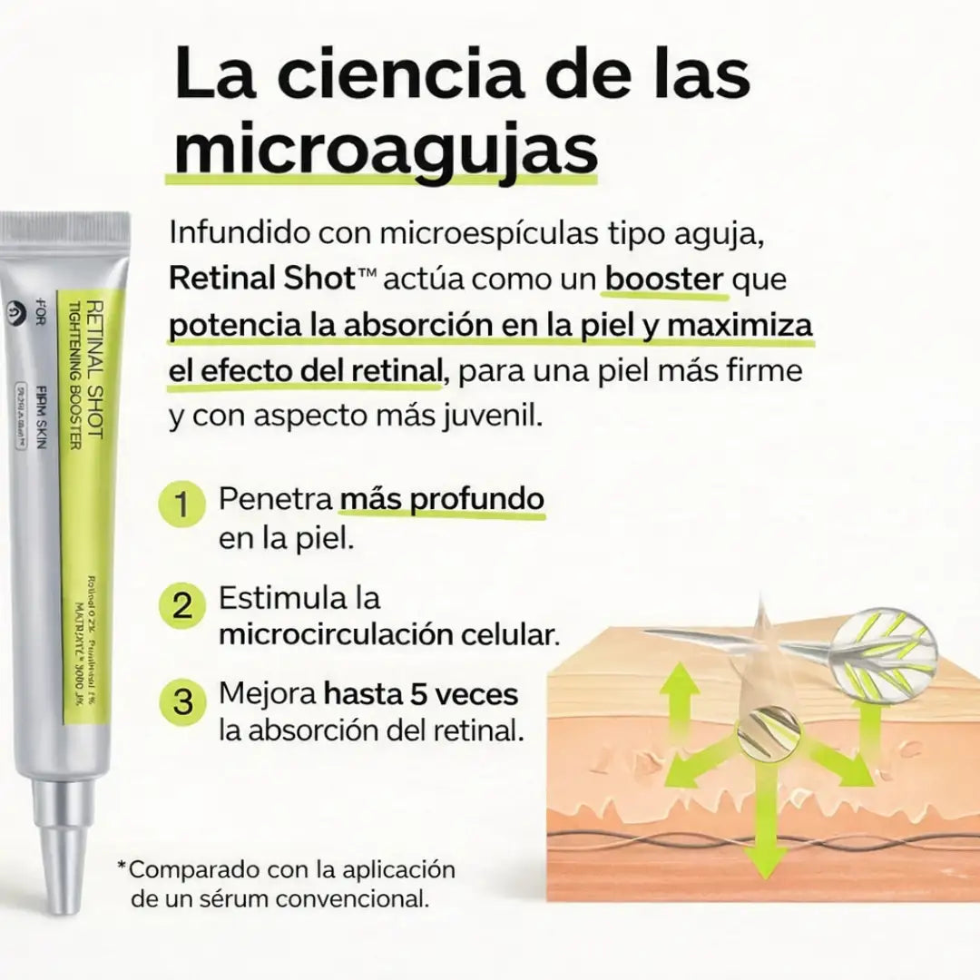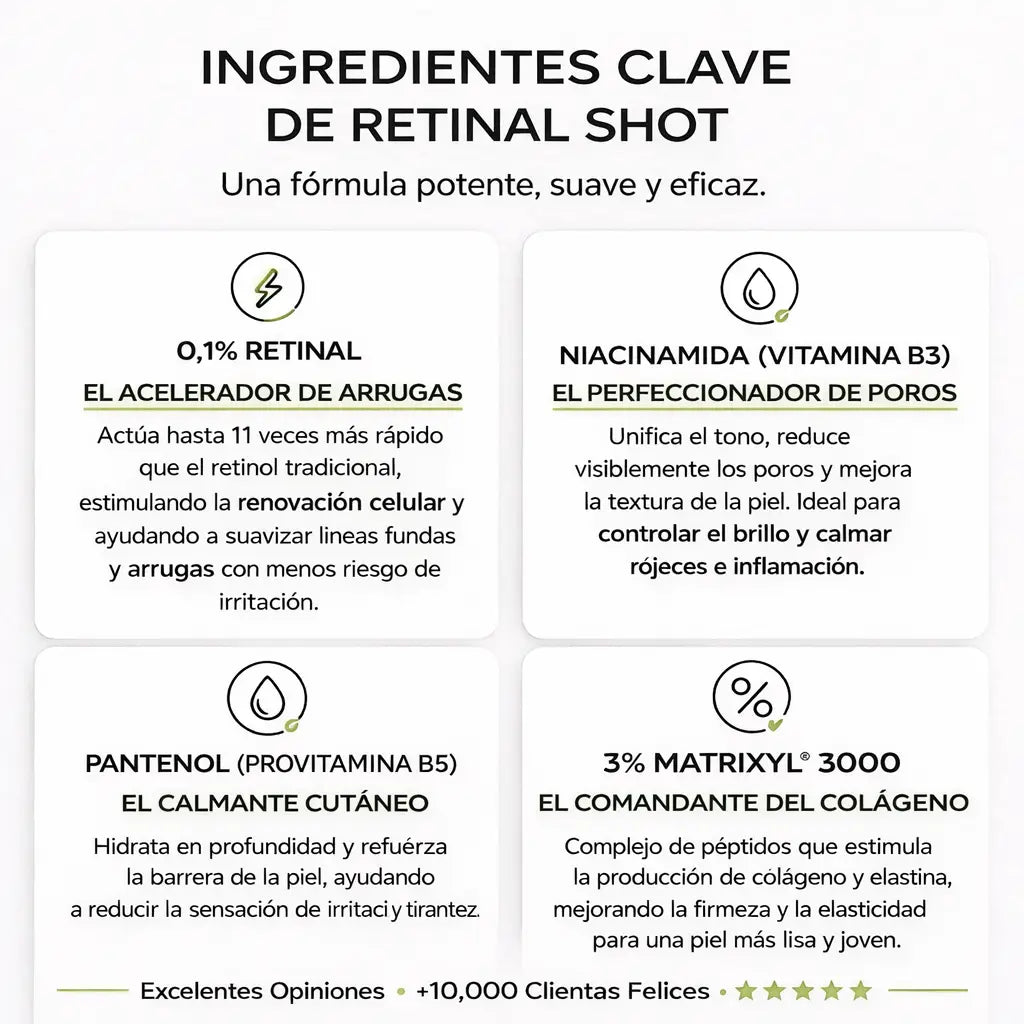 En resumen: con Retinal Shot™ estás usando una versión más potente, más inteligente y mejor tolerada que el retinol tradicional.